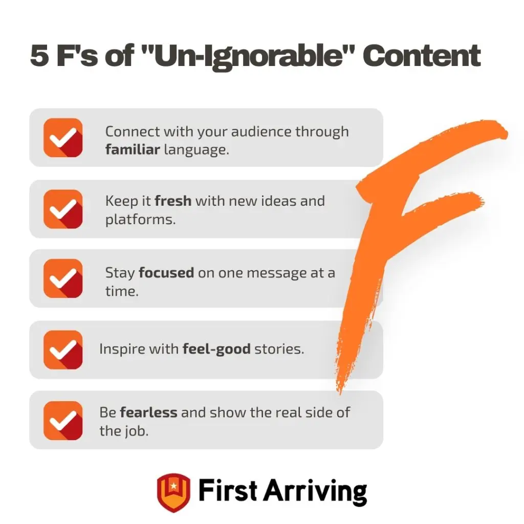 Ready to make your recruitment content un-ignorable? Use the 5 F’s to: