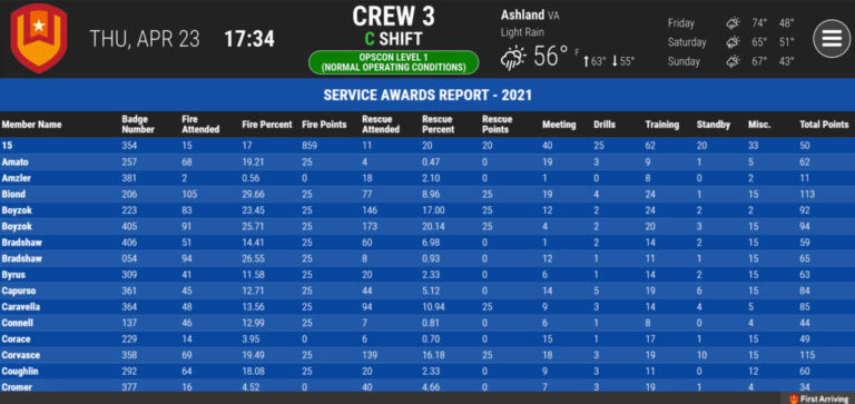 Service Awards Programs have been established by several state legislatures to help benefit volunteer firefighters and retain membership. In order for these programs to be fully implemented, the firefighter’s yearly activity, including incident and non-incident attendance, offices, committees, and several other events must be tracked. This can become quite complicated. This module provides an easy means to track data efficiently and produce reports mandated by the various programs. Reports are customized to the department’s specific requirements and needs.