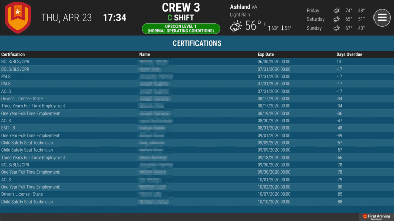 First Arriving’s Integration With Ninth Brain Displays Your Personnel’s Current And Expired Certifications Right On Your Digital Dashboards.