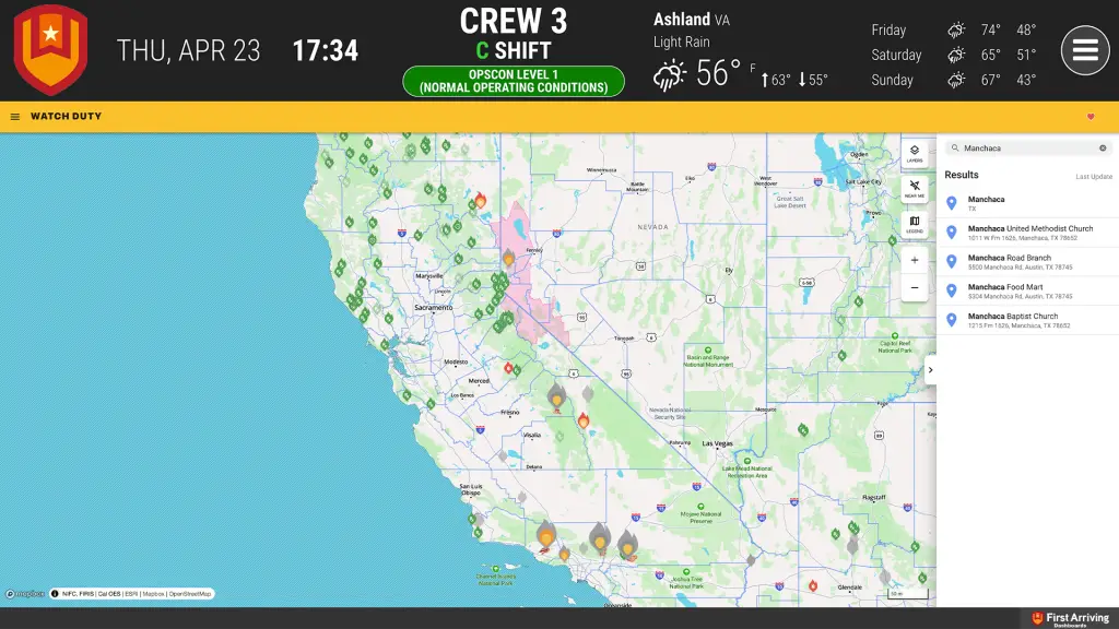 Watch Duty’s wildfire map rotating on your First Arriving Dashboard is perfect situational awareness with what is going on in your area or even where personnel might be deployed to. Visibility into the general direction of the fire can help with planning and awareness for citizens, department(s), and equipment allocation.