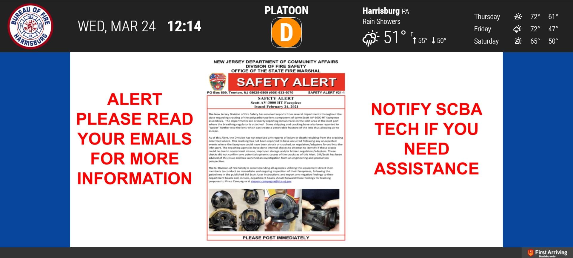 First Arriving Dashboards Deliver Consistent Messaging to Harrisburg (PA) Bureau of Fire Stations