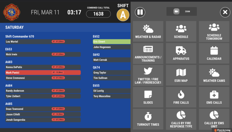 Chicago Heights’ digital dashboards use several integrations to help improve communication and situational awareness in the fire department. “We have Calendar, Weather, the last 20 fires and EMS calls, turnout times, Halligan, Instagram, Blogs, and First Arriving also made some custom pages for us to use. We also use Image Trend for reports on call volume per day, and where you can see combined year to date numbers at a moment’s notice,” said Wortel.
