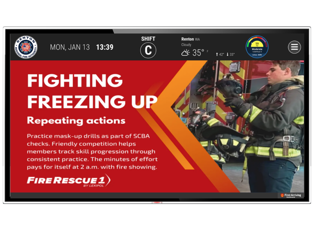 The department in King County provides residential, commercial and urban/wildland fire services within the city of Renton, Fire District 25, and Fire District 40. Their EMS teams operate as part of the Medic One/King County EMS system. They first learned of First Arriving through one of their firefighters, who heard about it from a friend in Arizona, Dominguez says.