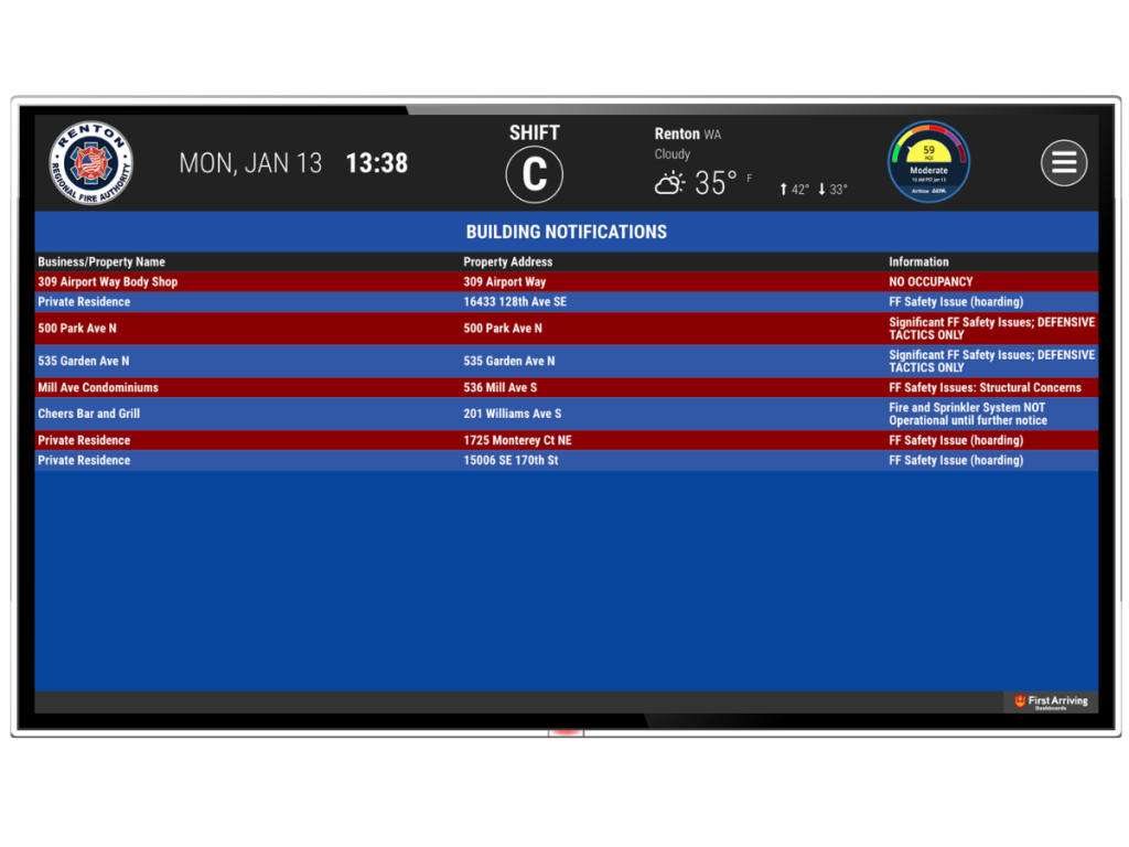 “That was where First Arriving came in, as the means, or the transport, to get that information physically onto big screens in the stations.”