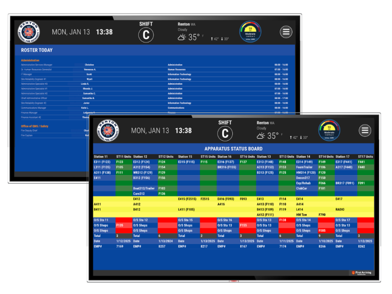 By creating an additional channel of communication, the dashboard system not only provides redundancy and reliability, but also higher engagement. That’s because the department can tailor each station to receive the metrics that are relevant to it, format them in a way that is interesting, and allow the station to add their own additional announcements, etc.