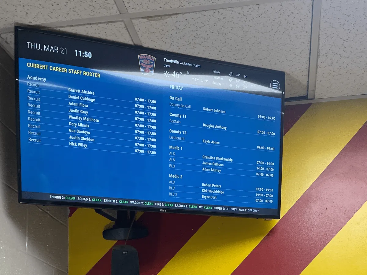 “As you walk through the station, you can glance at those dashboards and you get those training announcements. You can see the calendar and events for the day. And all the other integrations we have tied in for response keep everything front of mind.”