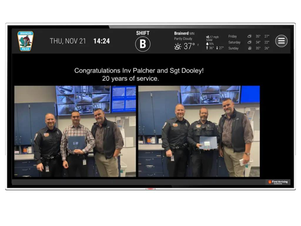 Implementation of 11 dashboards across 8 fire stations to improve communications and increase situational awareness among on-duty firefighters.
