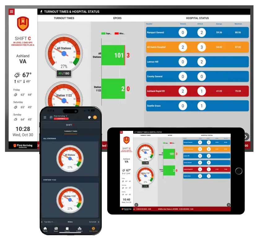 The First Arriving Information Platform unifies the systems your organization depends on — CAD, RMS, staffing, fleet, facilities, GIS, scheduling, training, alerts, and more. Instead of bouncing between apps or searching inboxes, your teams get a real-time operational picture tailored to their role, location, and device.